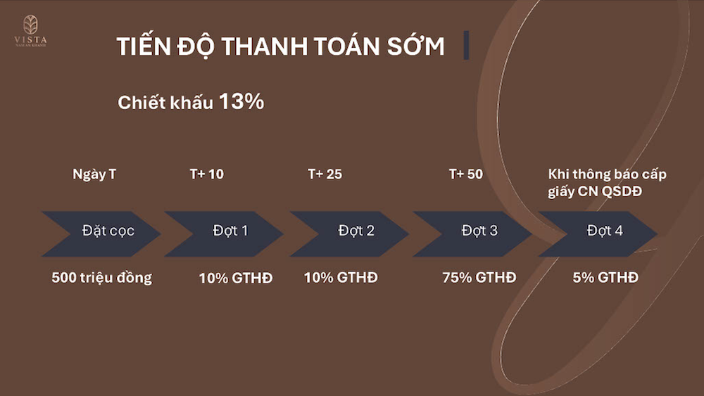 Khách hàng lựa chọn phương án thanh toán sớm được hưởng mức chiết khấu lên đến 13% cho khoản tiền thanh toán sớm, mức chiết khấu tối đa cho khách hàng lên tới 15,5%.