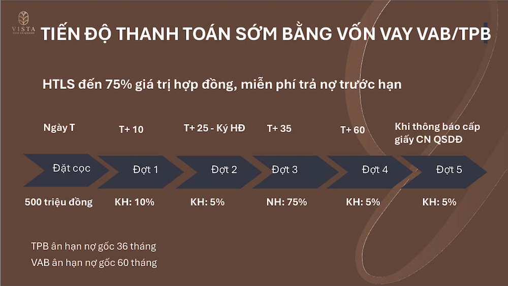 Tiến độ thanh toán sớm bằng vốn tự có vay Vietabank hoặc TPBank