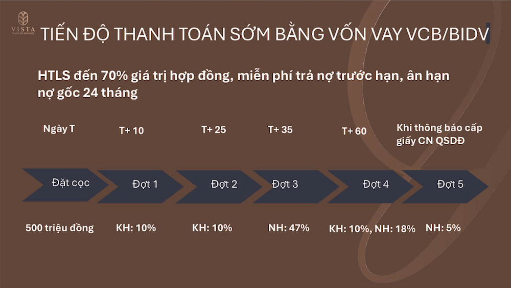 Tiến độ thanh toán sớm bằng vốn tự có vay Vietcombank hoặc BIDV