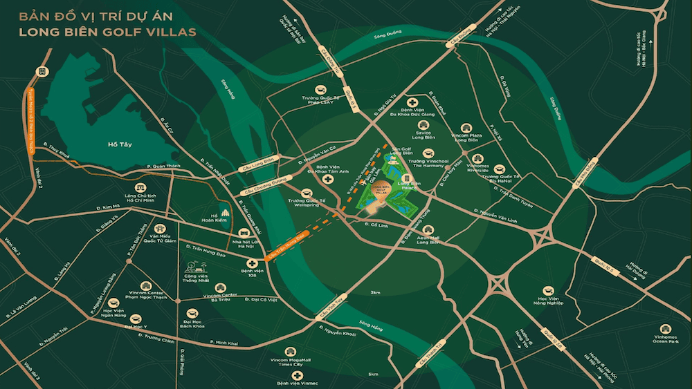 Không chỉ sở hữu nội khu chuẩn resort, Long Biên Golf Villas còn được bao quanh bởi mạng lưới tiện ích hiện đại nhất thủ đô – tất cả chỉ trong bán kính 3–5km.