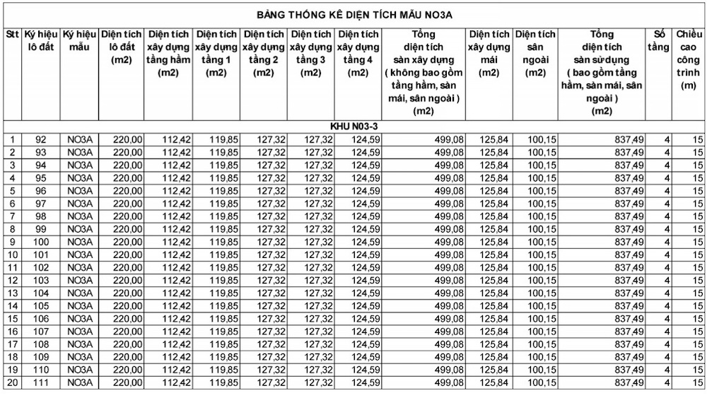 THIẾT KẾ DIỆN TÍCH 367M2 BIỆT THỰ HIM LAM GOLF VILLAS