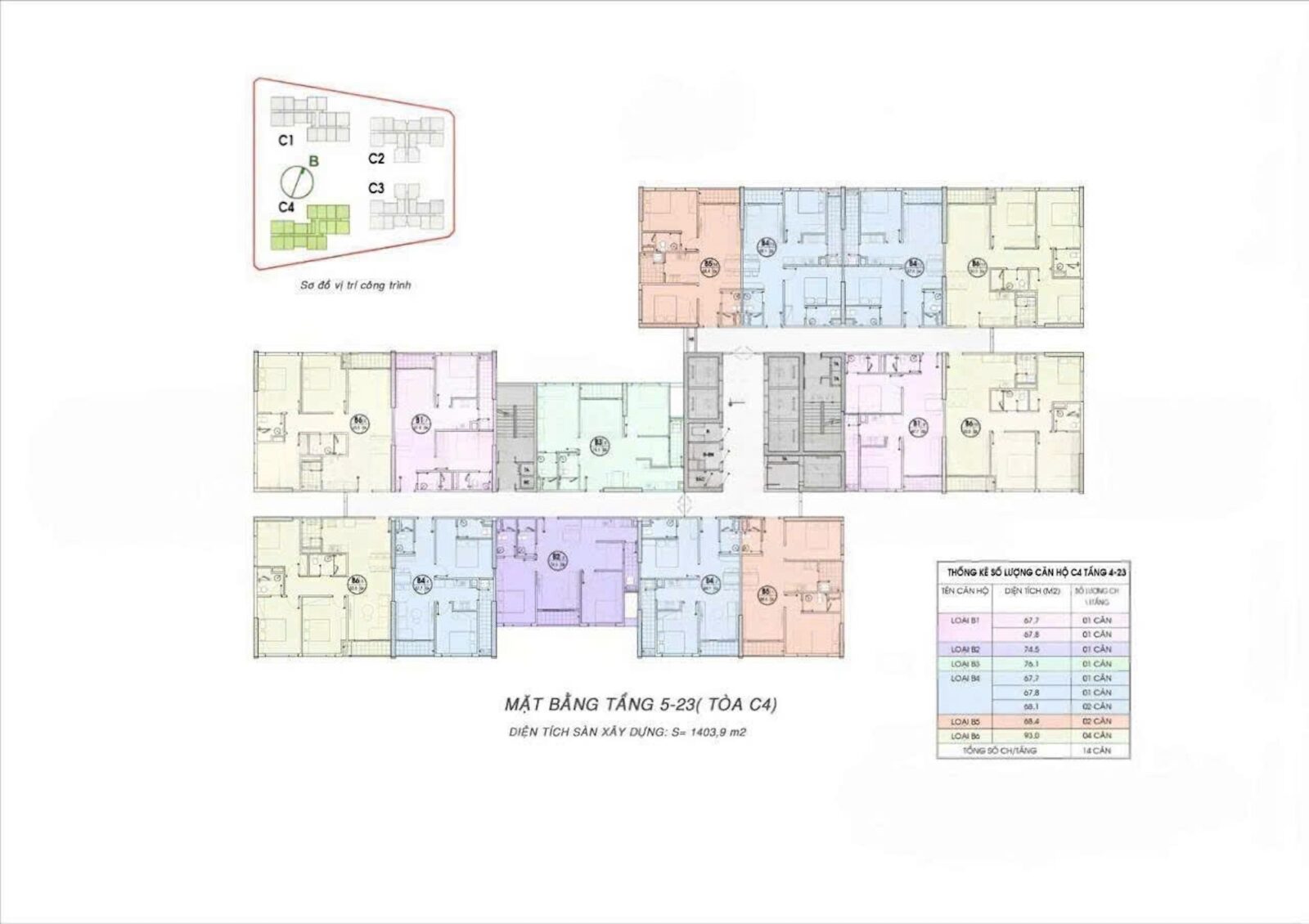 Quy mô: 4 tòa chung cư cao cấp: C1, C2, C3, C4