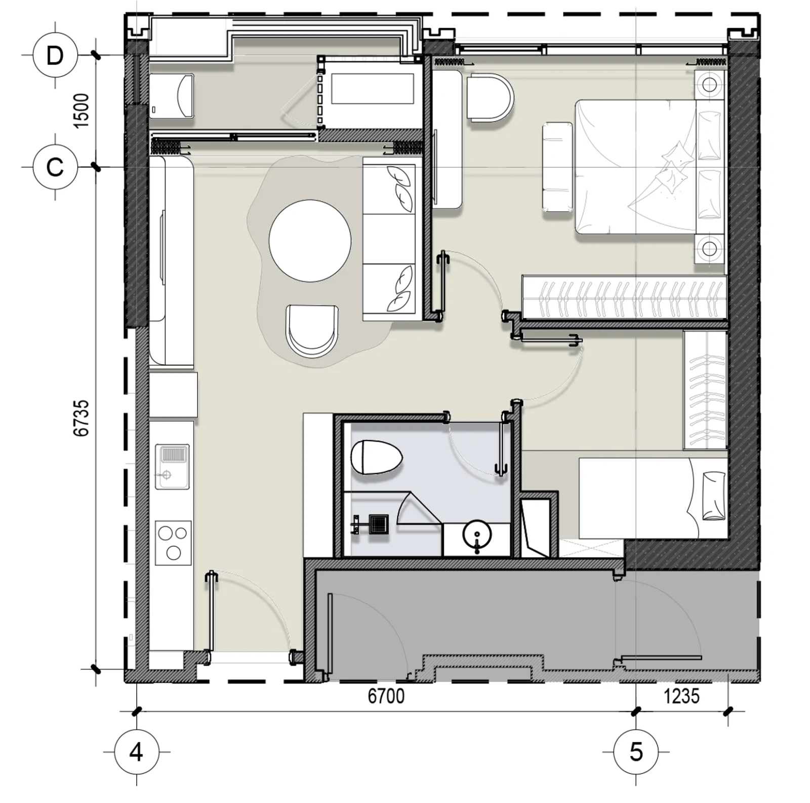 Căn hộ 1PN: từ 4,5 – 5,2 tỷ
