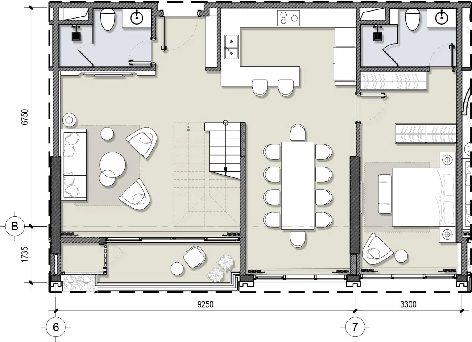 + Phòng khách thông thoáng, trần cao 2.8m – tối ưu đón ánh sáng