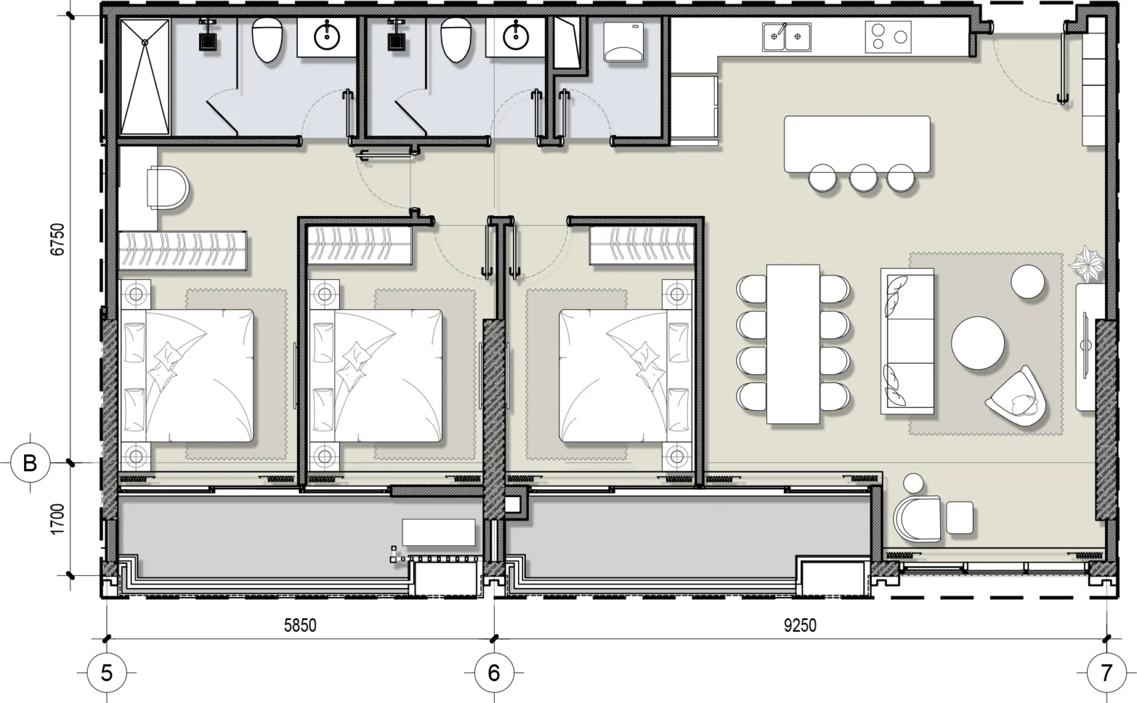 Với thiết kế mở, tất cả các căn hộ đều sở hữu ban công thoáng rộng và cửa sổ lớn, giúp đón trọn ánh sáng và gió trời từ Hồ Tây. Cách bố trí thông minh giúp không gian trong nhà luôn thông thoáng, tiết kiệm năng lượng, tạo cảm giác thư giãn tối đa.