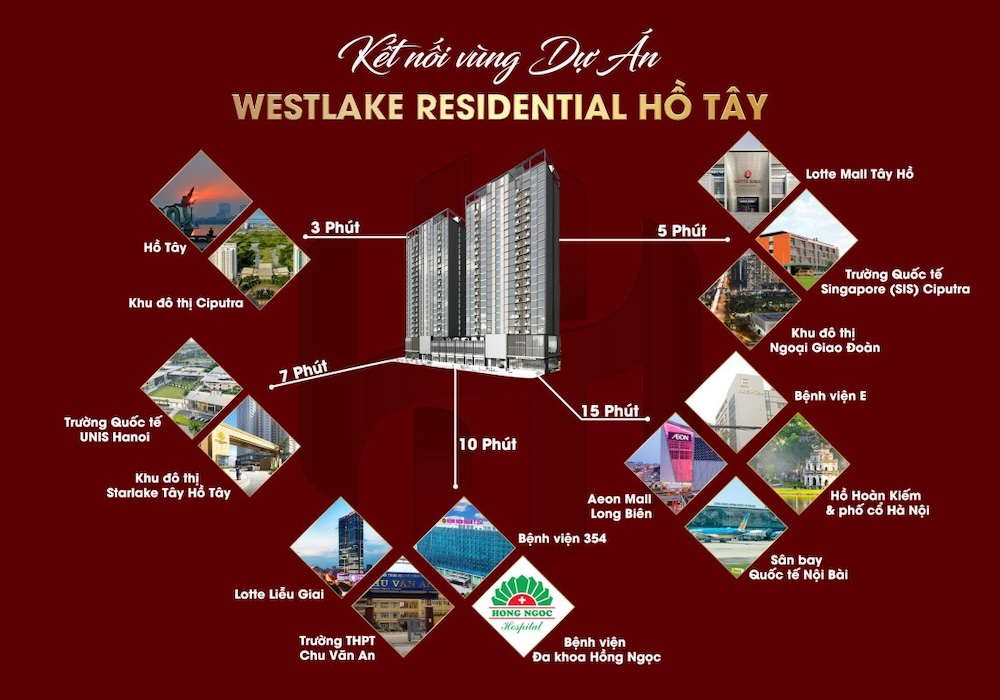 Với vị trí trung tâm khu Tây Hồ Tây – nơi được mệnh danh là “Phố Đông Thượng Hải của Hà Nội”, cư dân Chung cư Celestine Westlake được thừa hưởng trọn vẹn hệ thống tiện ích cao cấp hiện hữu và đang hình thành: