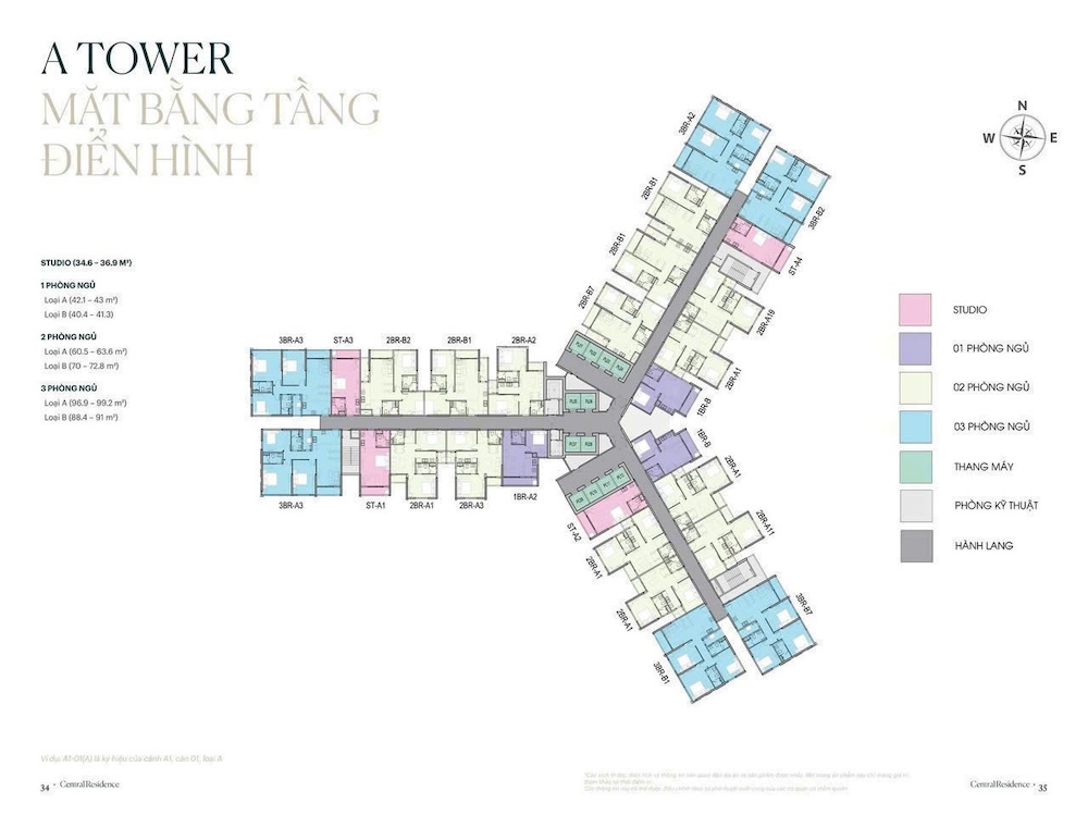 Studio | 34 – 36m² | Nhà đầu tư Dòng tiền/Người trẻ độc thân. Thích hợp cho thuê, dễ thanh khoản. |