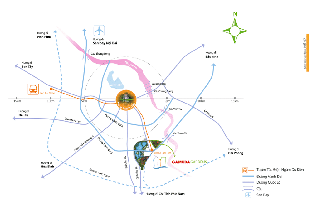 + Kết nối Phía Tây: Dễ dàng di chuyển tới khu vực Mỹ Đình, Cầu Giấy qua Vành đai 3 trên cao, tránh được tình trạng ùn tắc giao thông nội đô.