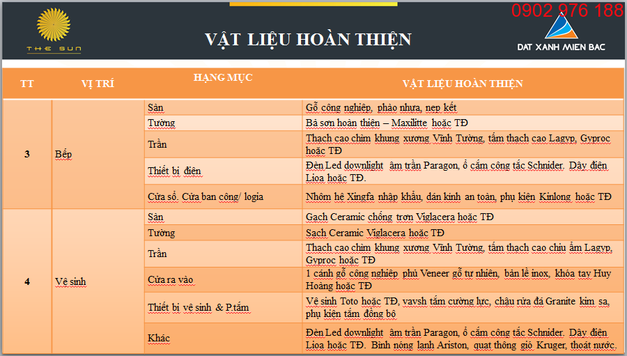 VẬT LIỆU BÀN GIAO CĂN HỘ THE SUN