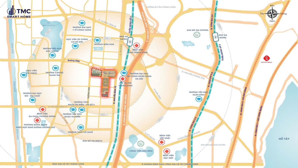 Một trong những yếu tố làm nên giá trị vượt trội của dự án TMC Smart Home chính là vị trí đắc địa và khả năng liên kết vùng hoàn hảo. Tọa lạc tại số 43 Nguyễn Đình Tứ, phường Cổ Nhuế 2, quận Bắc Từ Liêm, Hà Nội, dự án nằm ngay tại trung tâm hành chính mới và là cửa ngõ phía Tây Bắc của Thủ đô.