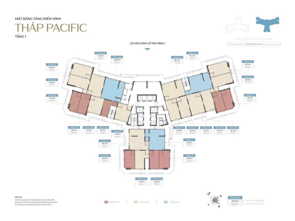 Quy mô: 45 tầng, 3 tầng hầm liên thông