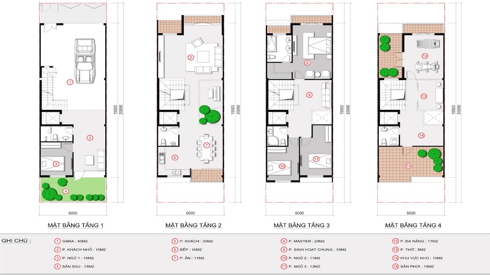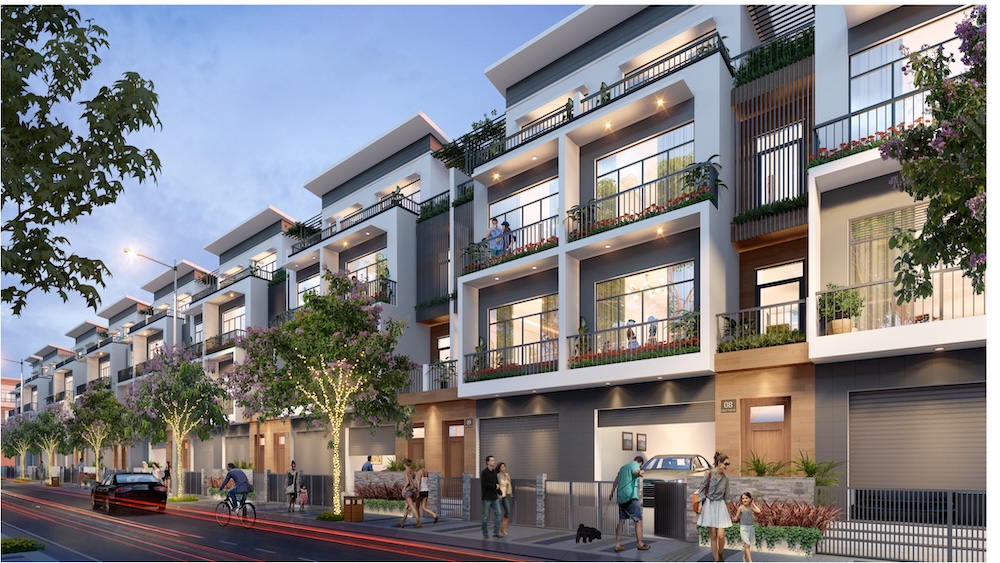 – Nhà phố liền kề: Thiết kế 1 trệt 2 lầu, diện tích xây dựng từ 60-100m², không gian sống lý tưởng cho gia đình trẻ.