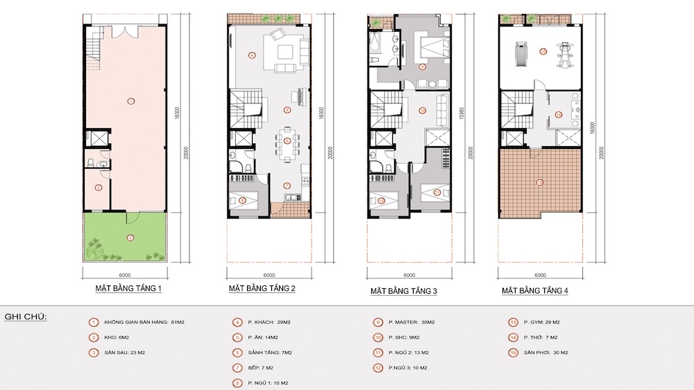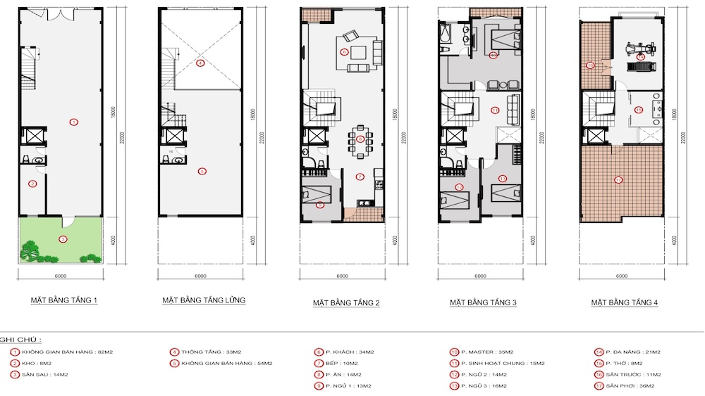 - Diện tích đa dạng, phổ biến nhất là 5x20m (100m²).