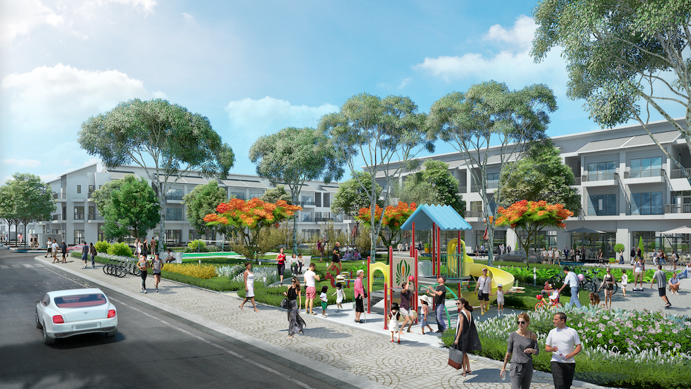 – Trung tâm thương mại: Khu shophouse và trung tâm thương mại sầm uất, nơi tập trung các chuỗi nhà hàng, cà phê, siêu thị, đáp ứng nhu cầu mua sắm và giải trí.