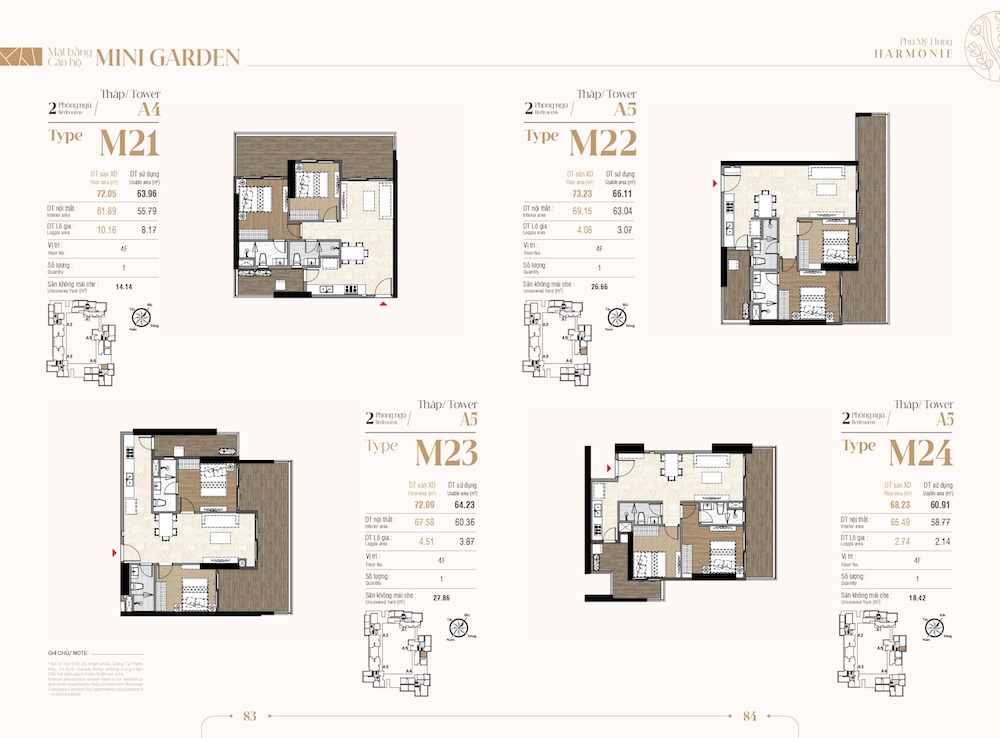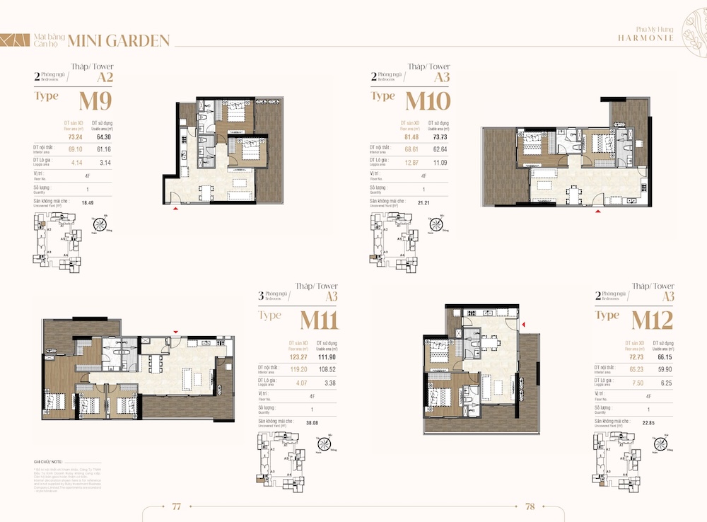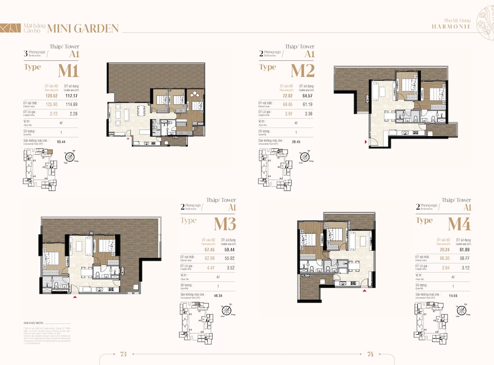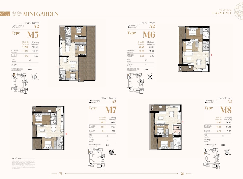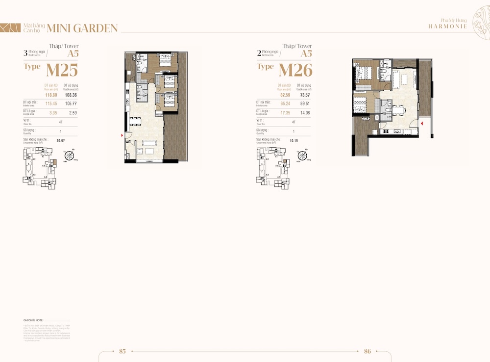 Sân vườn riêng (Uncovered Yard): Các căn hộ từ mã M1 đến M26 sở hữu một khoảng sân vườn riêng biệt ngay trước ban công hoặc phòng khách. Diện tích sân vườn có căn lên tới hàng chục mét vuông.